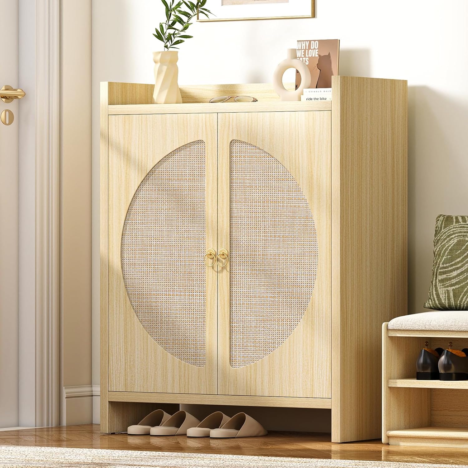- 【Versatile Rattan Storage Cabinet】More than just a shoe rack cabinet! Use it as a buffet cabinet with storage, a sideboard cabinet, an entry way cabinet with storage, a hallway cabinet, a show cabinet, or more. Perfect for living rooms, dining areas, hallways anywhere you need stylish storage. Declutter in style with this versatile beauty!