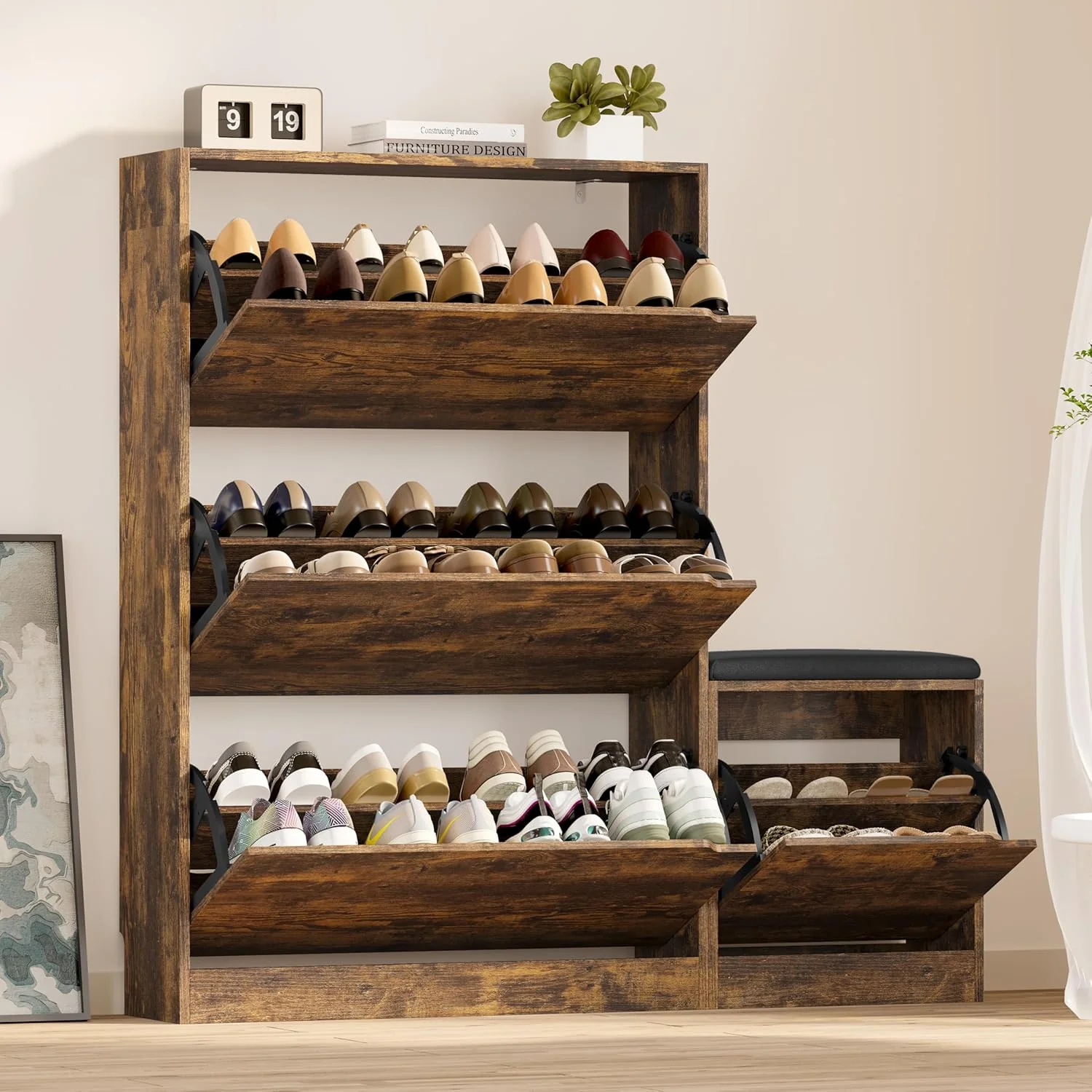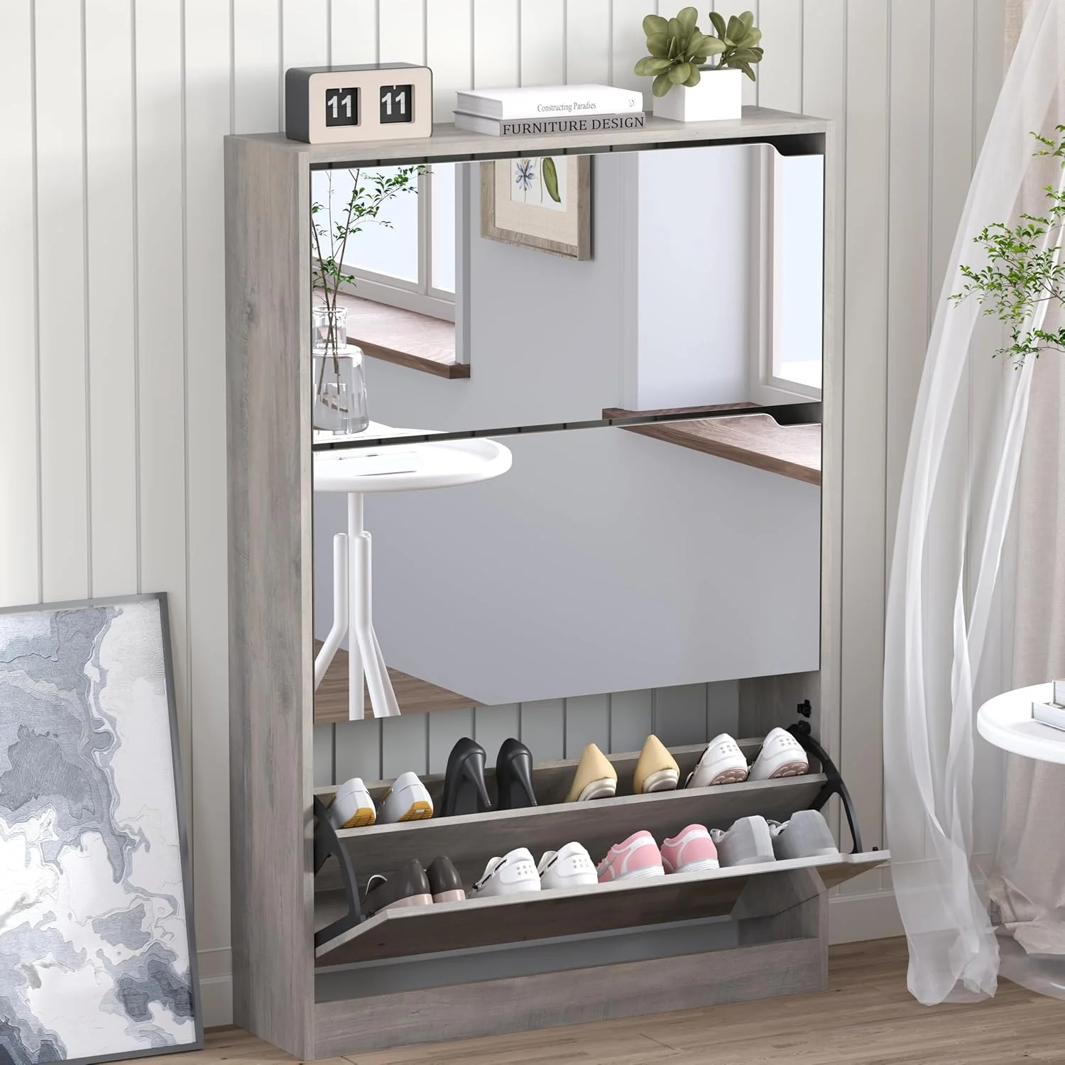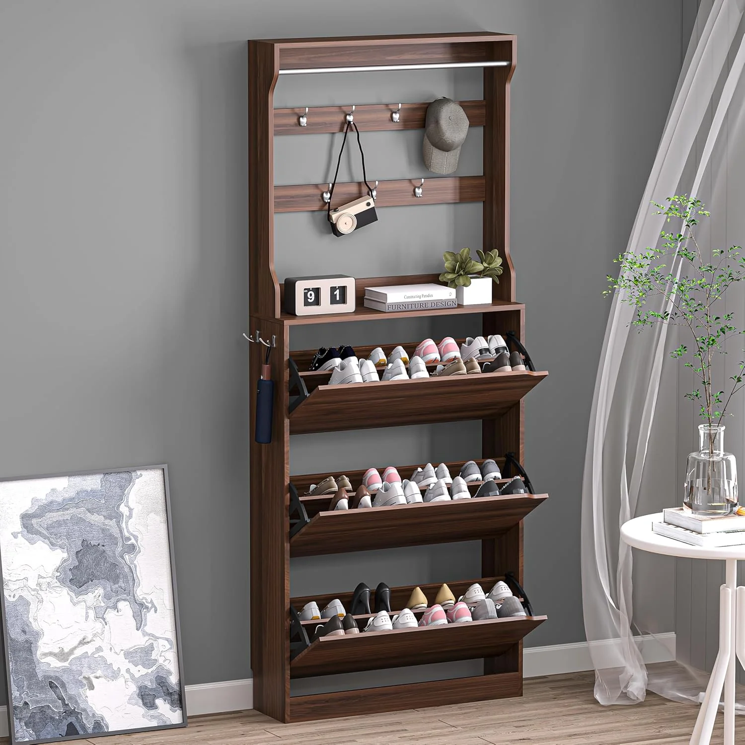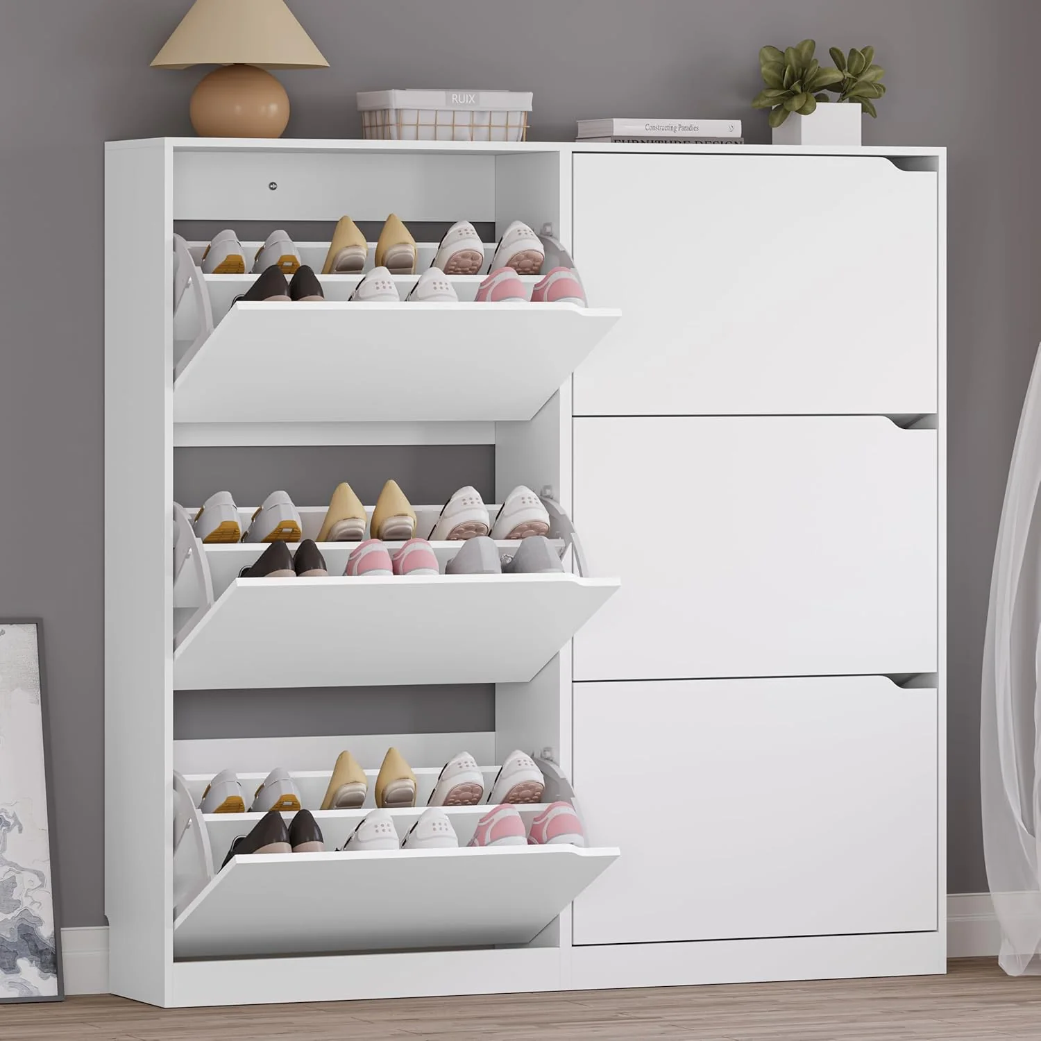 • Shoe Cabinet with 3 Flip Drawers, Hidden Wood Shoe Cabinet,Freestanding Shoe Storage Cabinet