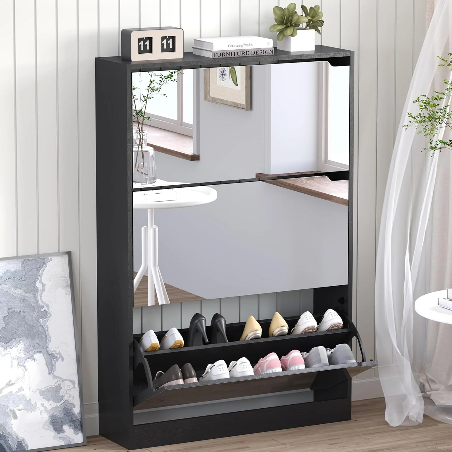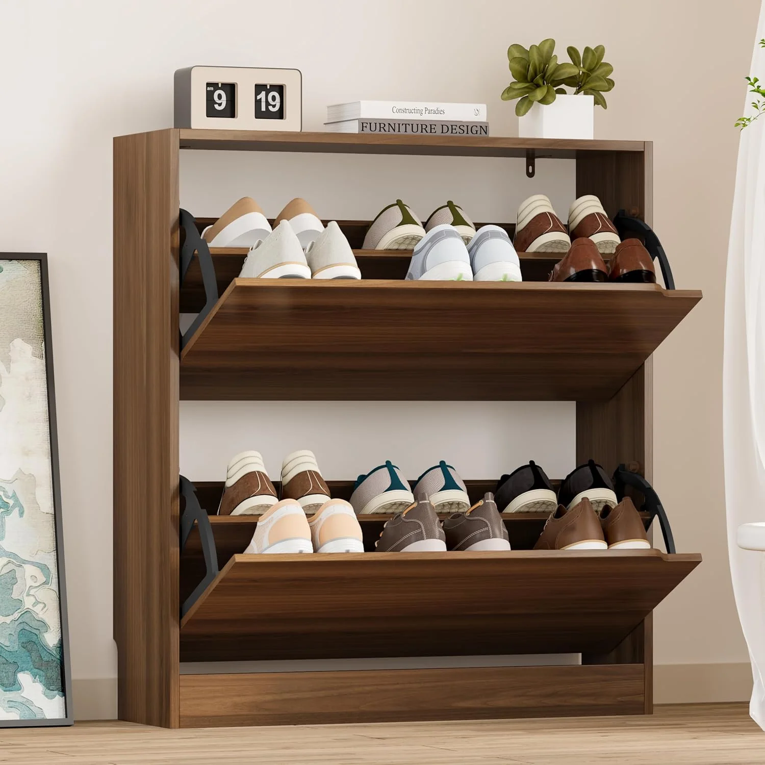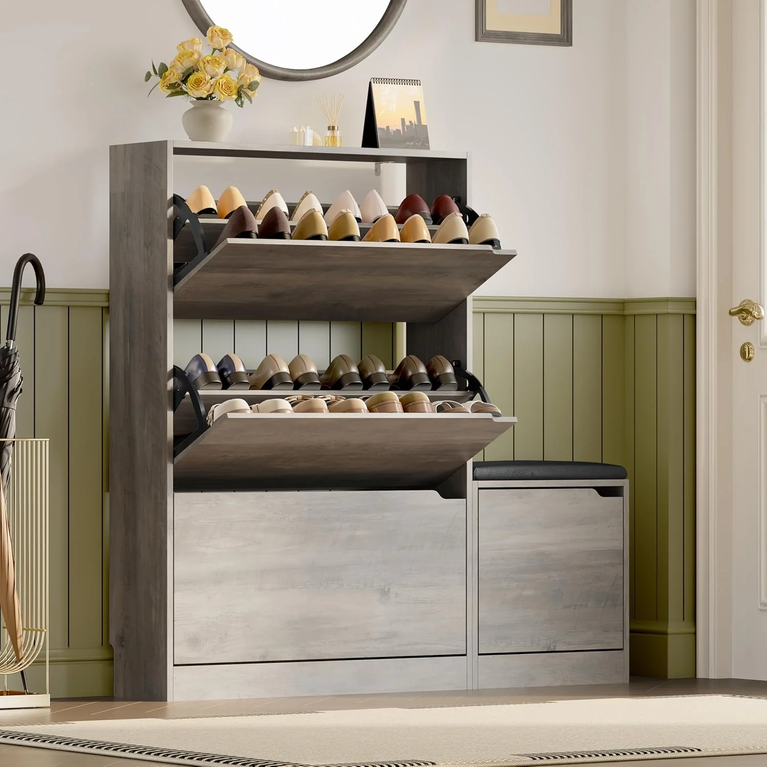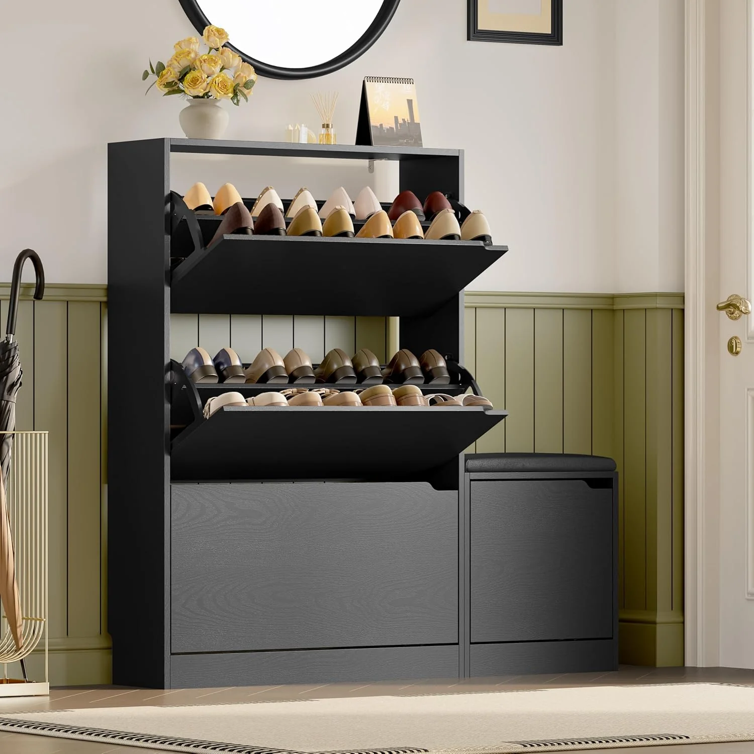 • Shoe Cabinet with 3 Flip Drawers, Hidden Wood Shoe Cabinet,Freestanding Shoe Storage Cabinet
