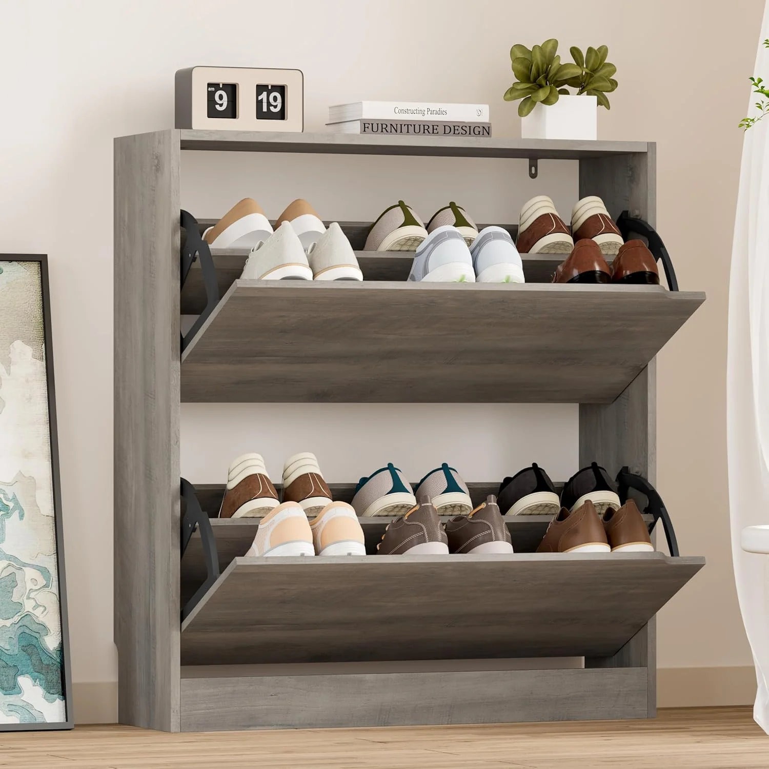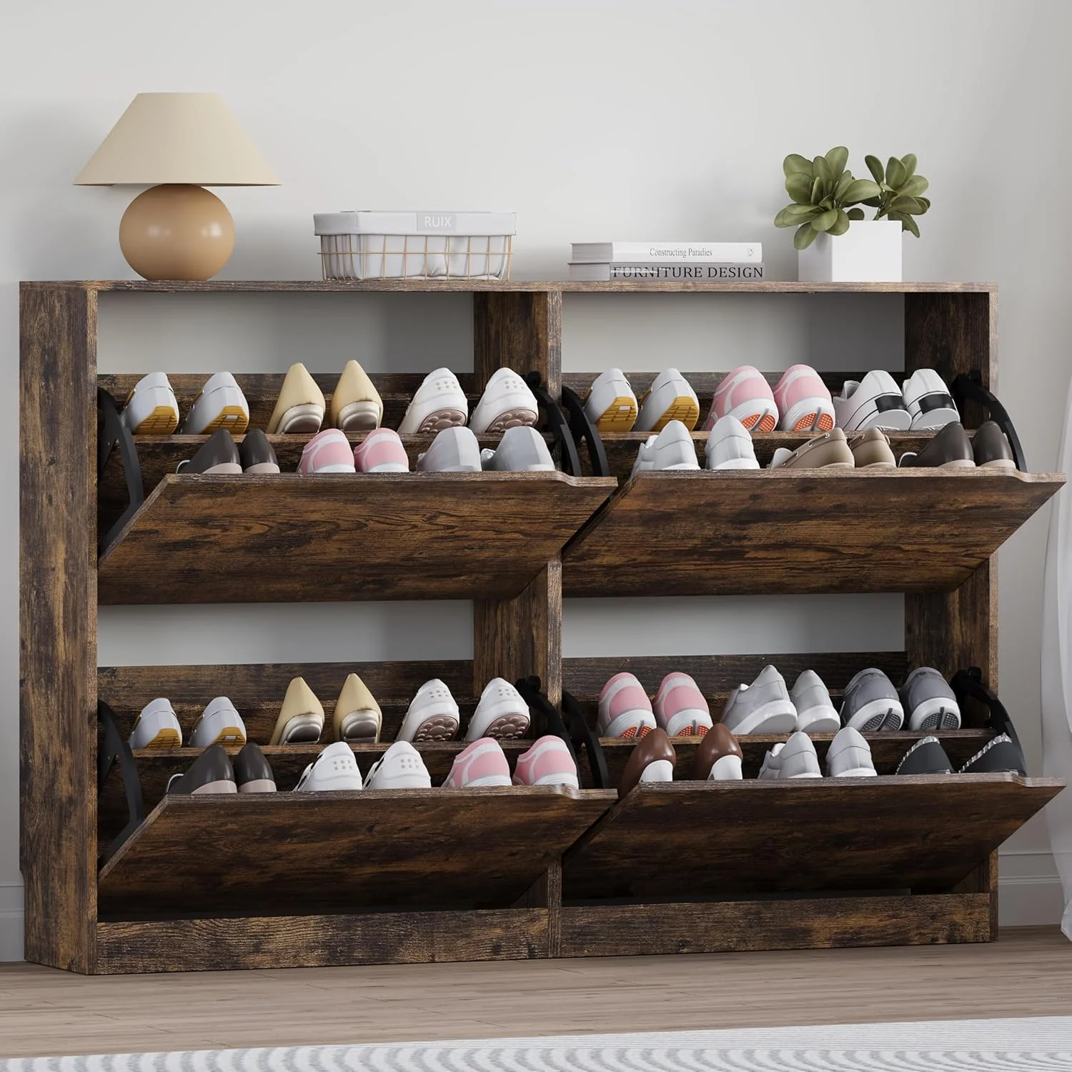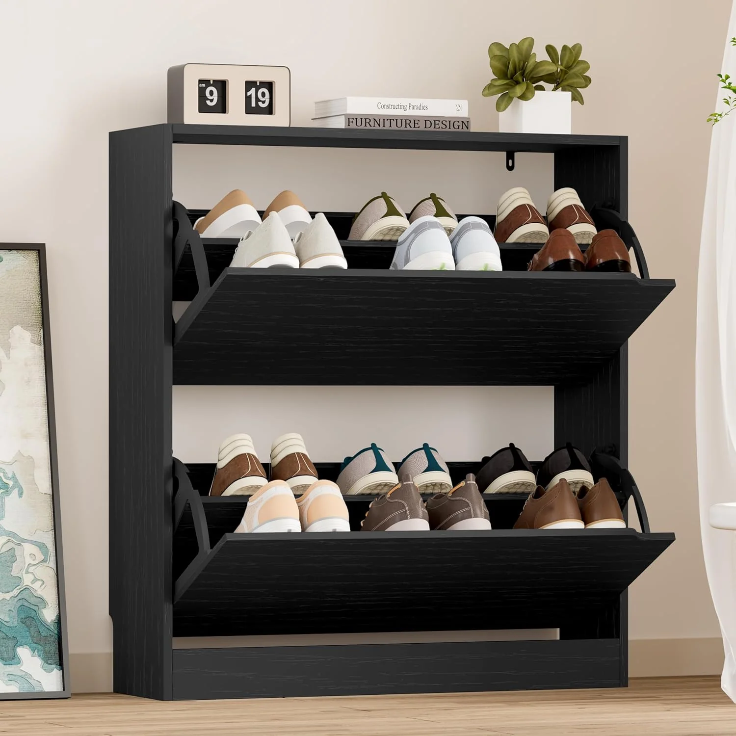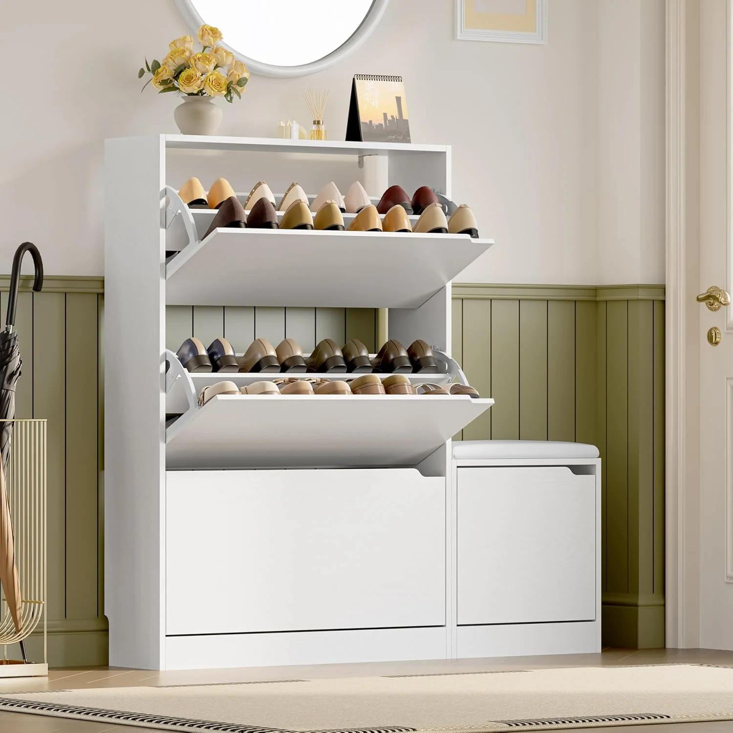 • Shoe Cabinet with 3 Flip Drawers, Hidden Wood Shoe Cabinet,Freestanding Shoe Storage Cabinet